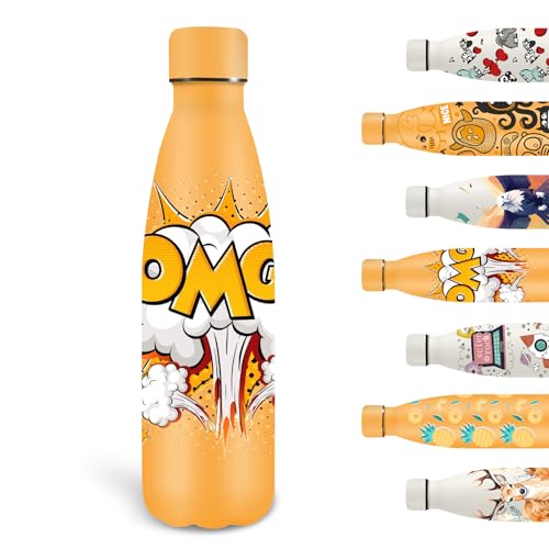 Grsta Gourde, 500ml Gourde Isotherme, Gourdes Personnalisée Sans BPA, Gourd Enfant anti Fuite Froid&Chaud, Double Paroi Isolante, Gourd Reutilisable pour l'École, Bureau, Voyage, Sports, Jaune