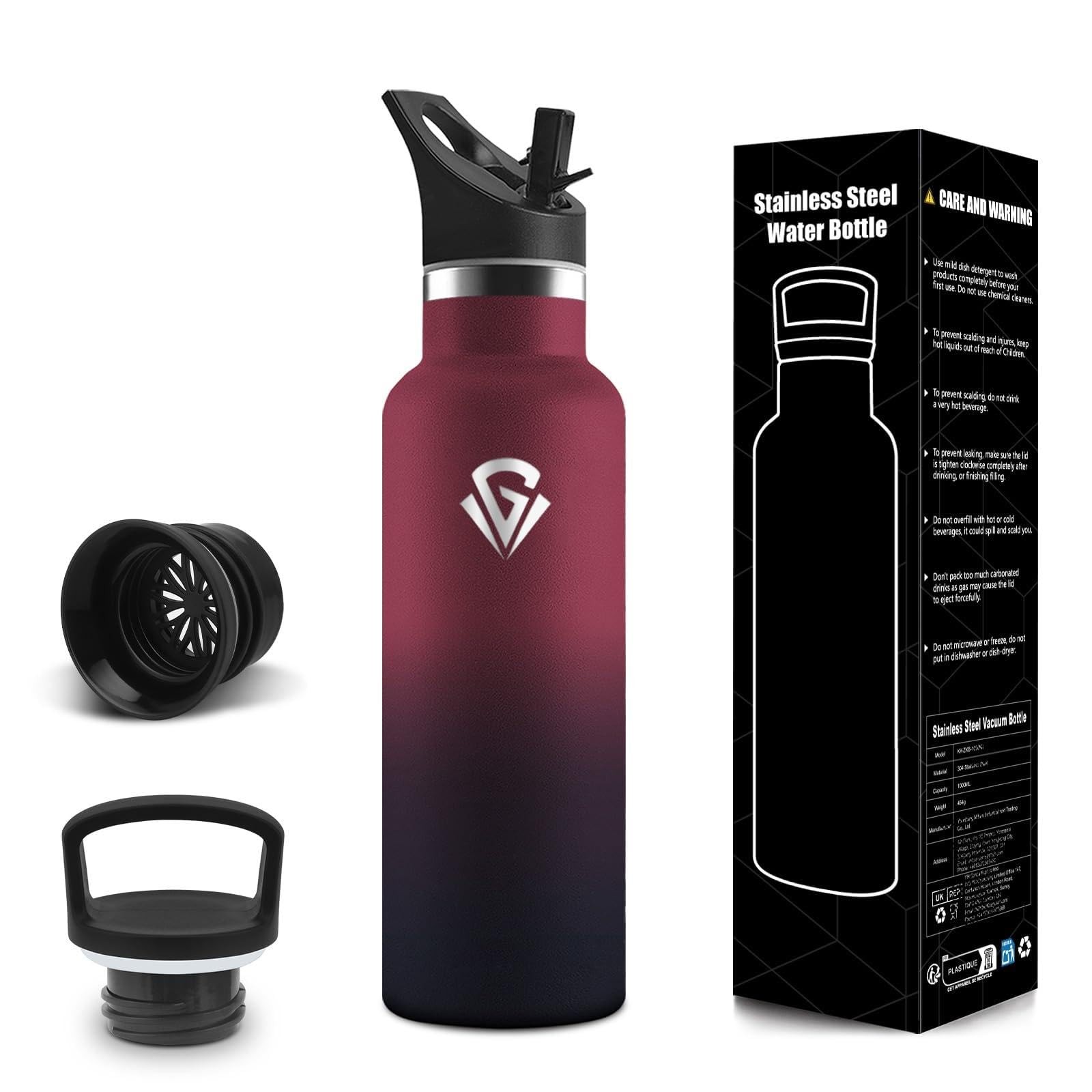 Gourde, 500 ml Sans BPA, Gourde Isotherme, Gourdes Avec Paille et 2 Couvercle...