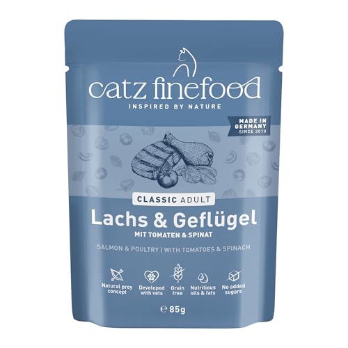 catz finefood Classic N° 5 Nourriture Humide pour Chat au Saumon et volaille – Nourriture Humide Gourmet pour Votre Chat sans Sucre ni céréales, sans Gluten, avec Haute teneur en Viande, fabriquée en