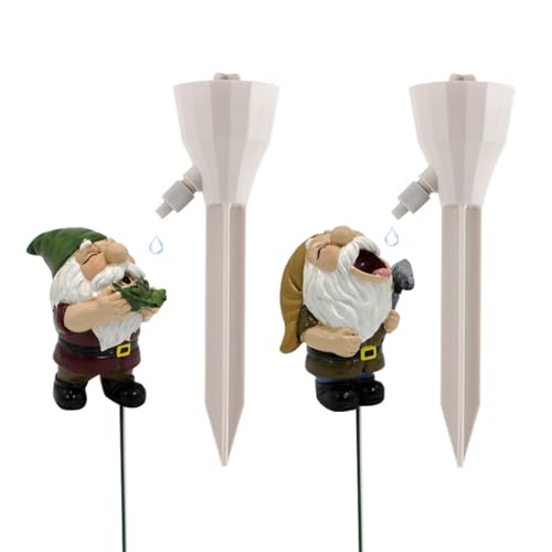 VEHICAR Lot de 2 piquets à arrosage automatique avec statue de nain en résine, dispositif d'irrigation goutte à goutte pour plantes de jardin