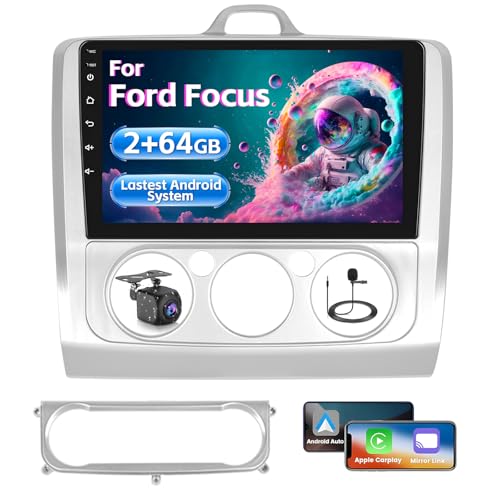 Inefala 2G+64G Android 15 Autoradio pour Ford Focus 2004-2011 avec CarPlay sans Fil et Android Auto, 9 Pouces Écran Tactile avec Lien Miroir Bluetooth DSP WiFi GPS SWC AHD Camera de Recul