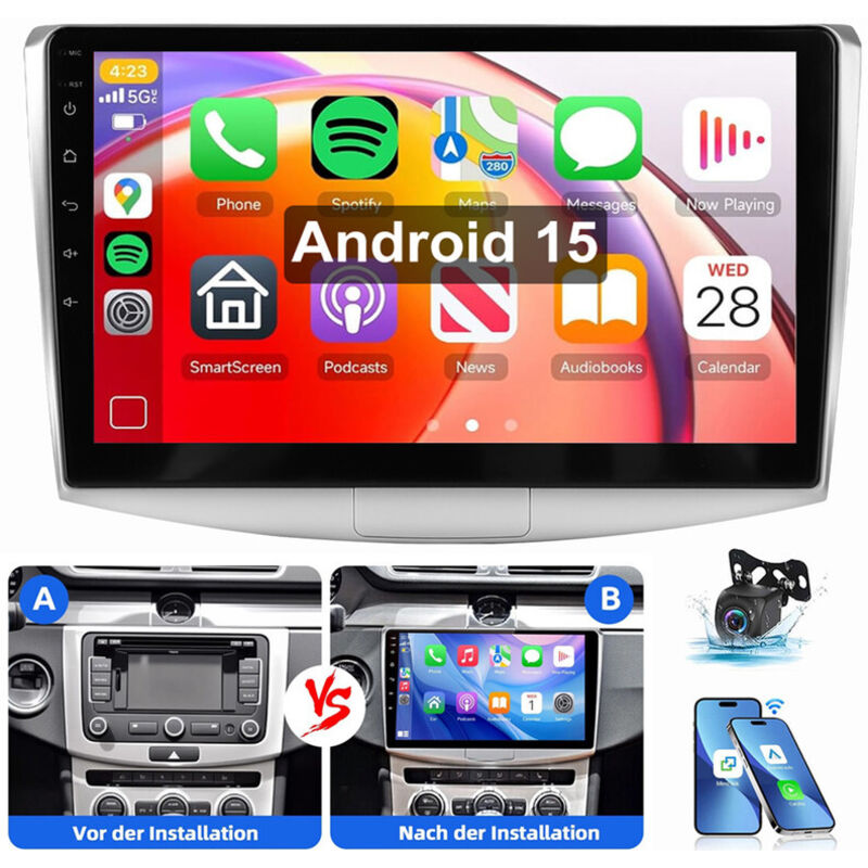ESSGOO Autoradio 7" Android 14 4G+64G Apple Carplay GPS NAVI WIFI RDS FM Bluetooth pour VW Golf 5 6