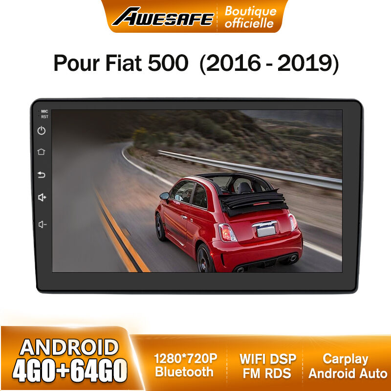 AWESAFE Autoradio Android 13 Pour Fiat 500 (2016-2019) 4Go+64Go 9'' écran Tactile Bluetooth Carplay Android Auto GPS WiFi Noir