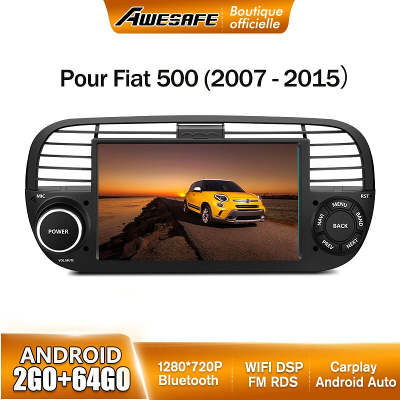 AWESAFE Autoradio Android 13 pour Fiat 500 (2007-2015) 2Go+64Go avec 7 '' Écran Tactile Carplay Android Auto GPS WiFi DSP FM