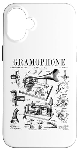 Gramophone Vinyle Amoureux Musicien DJ Vintage Brevet Coque pour iPhone 16