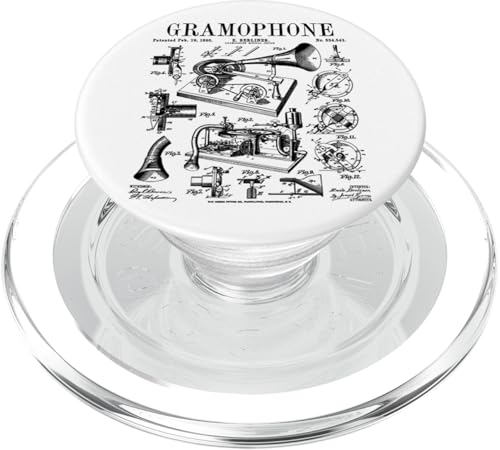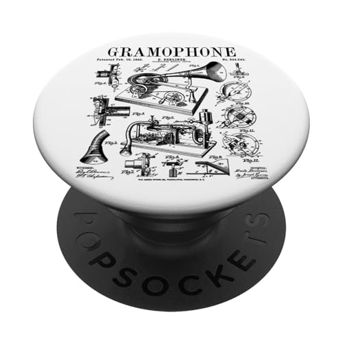 Gramophone Vinyle Amoureux Musicien DJ Vintage Brevet PopSockets PopGrip pour MagSafe