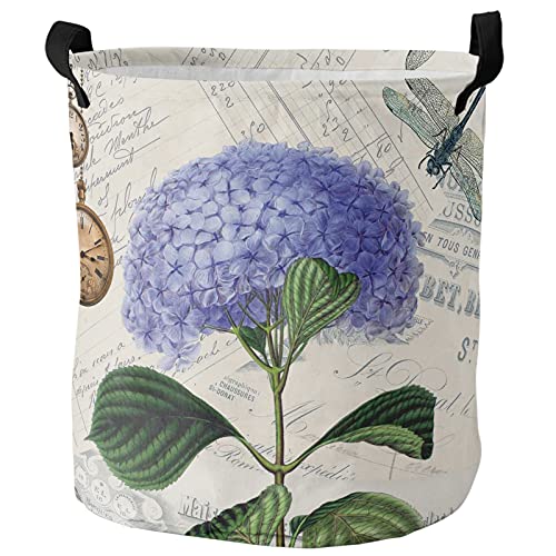 Panier À Linge Libellule Fleur Violette Rustique Grand Panier À Linge Multifonction Pliable Bac De Rangement, Pour Vêtements, Salle De Bain, Couvertures, 60L