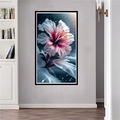 Fleurs d'Hibiscus Diamond Painting, 5D DIY Grand format Diamant Painting Kit Complet, Peinture Diamant Artisanat Strass Point de Croix Painting pour Adultes Enfants, Décoration Intérieur 25x45cm A-260