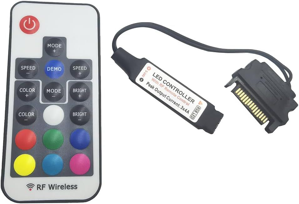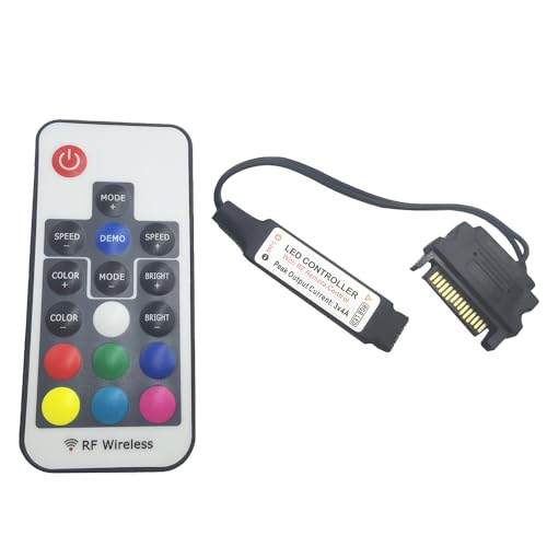 Mini contrôleur RVB DC12 V RF17 - Télécommande sans fil - Grand contrôleur RVB à 4 broches pour PC - Boîtier d'ordinateur - Éclairage LED 5050 (12 V 4 broches SATA)