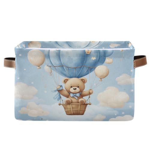 Grand panier de rangement pliable en forme d'ours en montgolfière avec poignées pour chambre à coucher, bureau à domicile