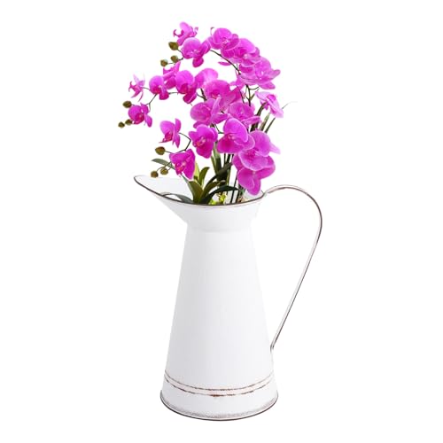 DIYEAH Pot à Fleurs Vintage Rétro en Métal Blanc Pur Grand Format, Jardinière D'intérieur Rustique pour Décoration Intérieure, Cache-Pot Polyvalent pour Bureau et Plantes Décoratives