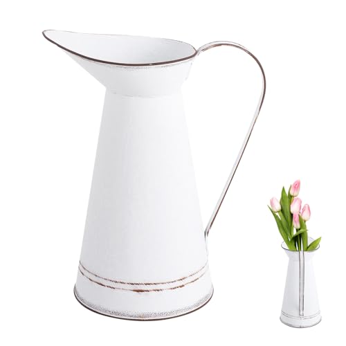CIYODO Pot de Fleurs Rustique en Métal Blanc Pur, Grand Modèle, Cache-Pot Décoratif pour Succulentes, Plantes D’intérieur, Décoration Table et Bureau, Jardinière Vintage Campagne, Usage