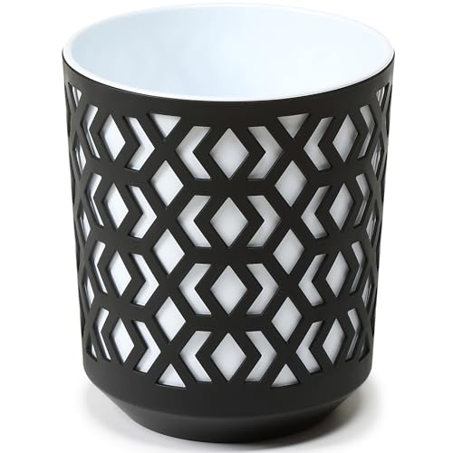 KONZEPT Grand pot de fleurs, imitation textile 30 cm, cache-pots en plastique pour plantes d’intérieur, utilisables à l’intérieur, noir