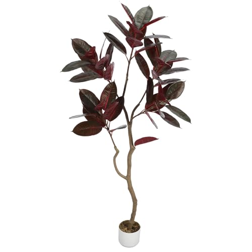 GarveeLife Camélia Artificiel avec Pot Blanc - 120 cm - Grand Arbre Artificiel en Pot avec Feuilles et Fleurs réglables - Décoration d'intérieur pour Maison, Mariage, fête, Jardin - Rouge