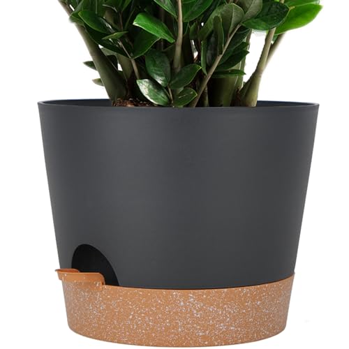 SwinDuck Grand Pot de Fleurs cylindrique en Plastique avec réservoir Profond de 1701 g et Soucoupe pour Plantes d'intérieur et d'extérieur, Noir et Marron 30,5 cm