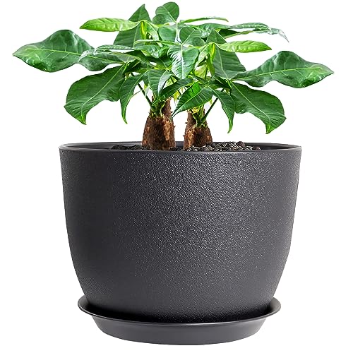 UOUZ Grand Pot de Fleurs Moderne en Plastique avec Trous Hauts et Soucoupe pour Plantes et Fleurs de Jardin d'intérieur et d'extérieur Noir 30,5 cm