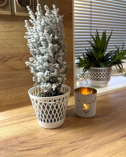 Kimmel Lot de 3 Cache-Pots à Motif grillagé - 12 cm - Blanc - pour Plantes Vertes d'intérieur - Pot de Fleurs décoratif