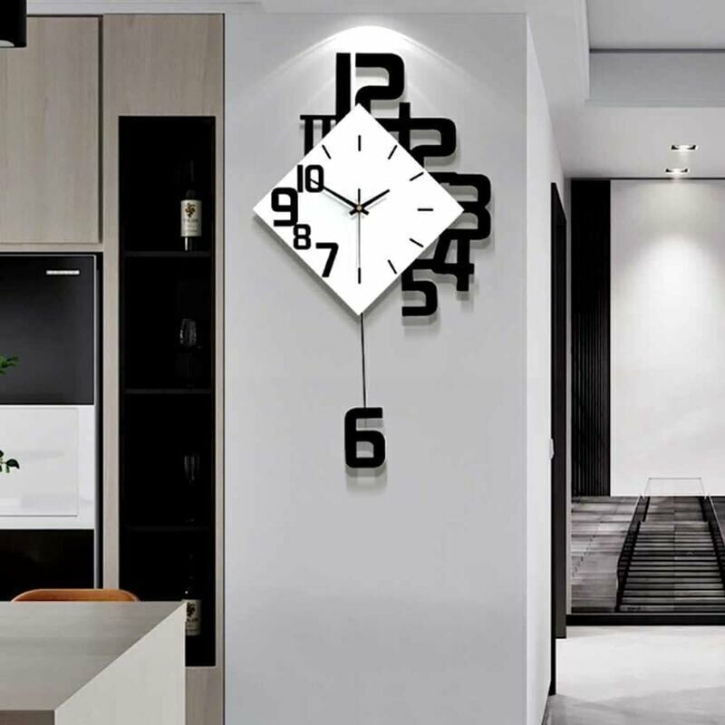 Décoratif Grand Horloge Murale Pendules Murales Silencieuses Swing Horloge Murale Design pour Salon Chambre Salle à Manger Cuisine Bureau 34x63cm