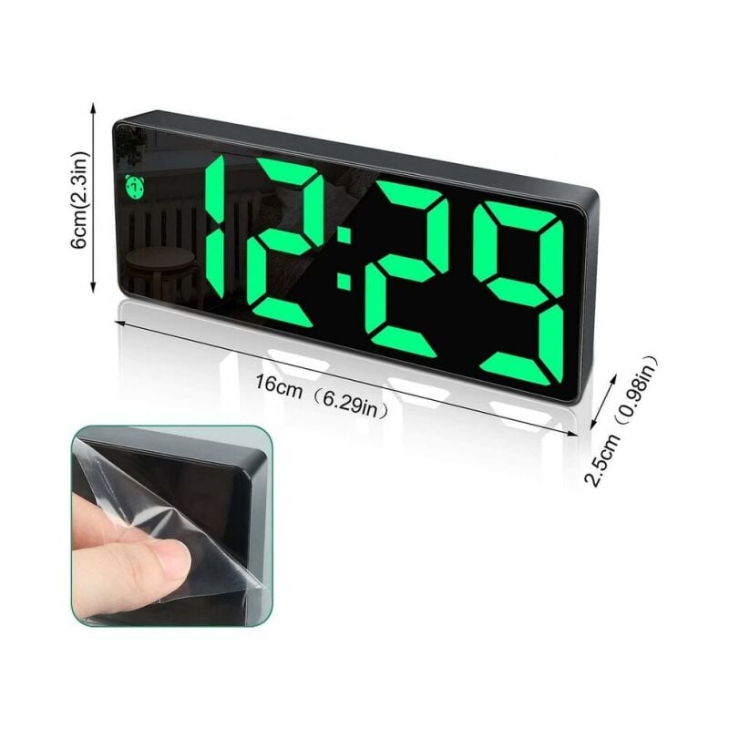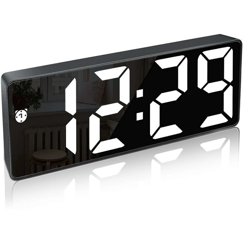 Réveil Numérique,Grand écran LED,Horloge de Surface Miroir avec Fonction Snooze et Connexion de Charge usb Réglable en Luminosité Réveil pour