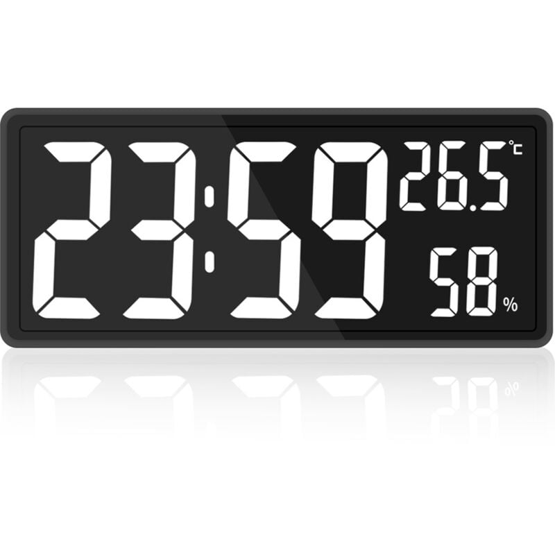 Vtizikl Horloge numérique grand écran, grande horloge murale numérique avec température et humidité, horloge murale numérique avec chiffres LED pour