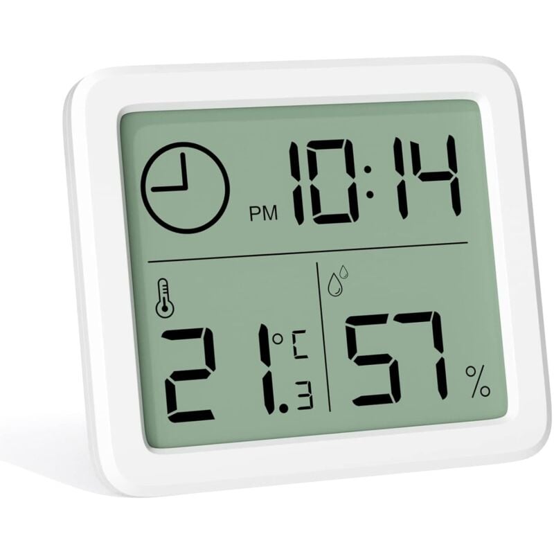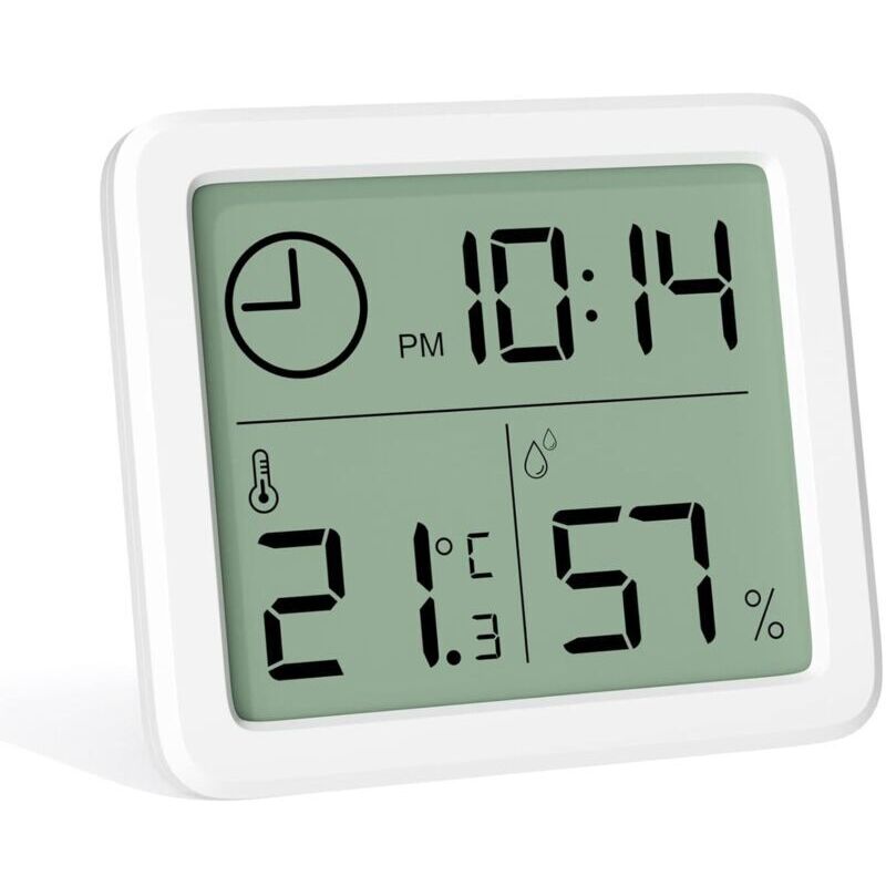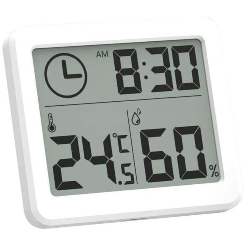 Mini thermomètre intérieur numérique, hygromètre portable professionnel à grand écran avec horloge. Thermomètre blanc précis, pour maison, chambre de