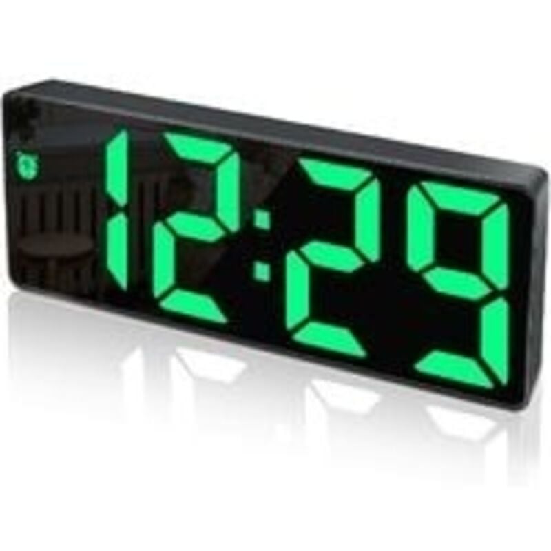 Jeffergarden Miroir grand horloge numérique LED, réveil électronique pour la maison, grand écran, horloge murale, blanc et vert