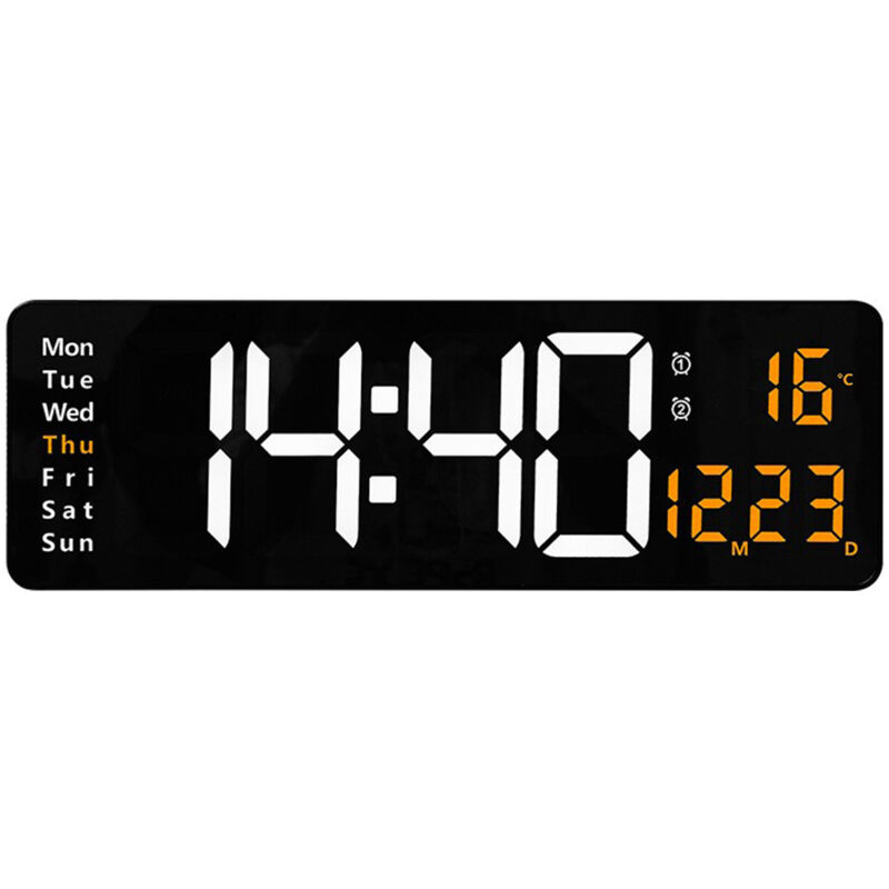 Horloge murale digitale radiocommandée grand écran, horloge murale électronique led thermomètre de salon Horloge led grand écran avec date et