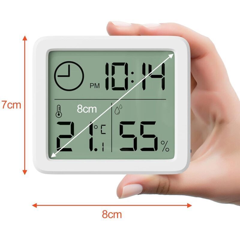 Mini Thermometre Interieur Numérique, Hygrometre Portable Professionnel à Grand Écran avec Horloge, Thermomètre Blanc Précis, Hygromètrepour la Maison