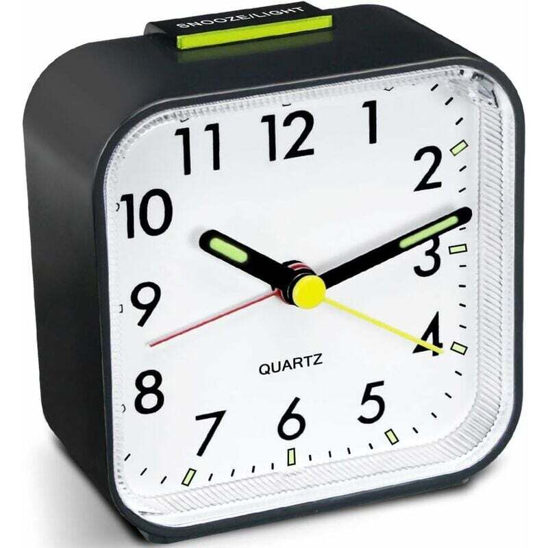 Réveil silencieux à piles, sans tic-tac, grand écran, horloge de chevet, horloge de chambre simple (noir)