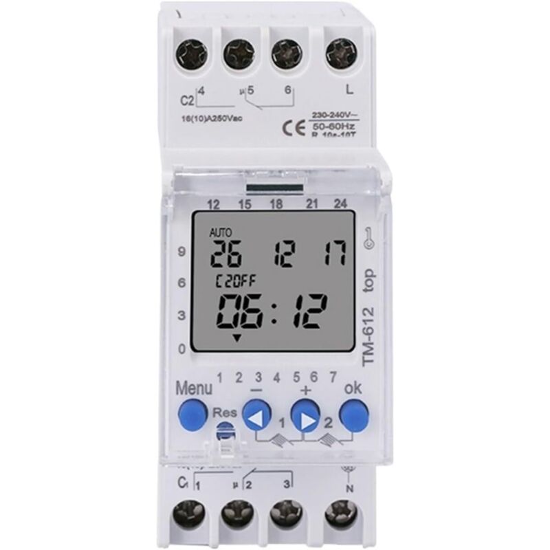 Tigrezy - TM612 220 vca 16 a 6 broches 2 no 2 nc 2 canaux Grand écran lcd Horloge programmable 24 h avec deux sorties relais Minuterie 2 no (TM612 12