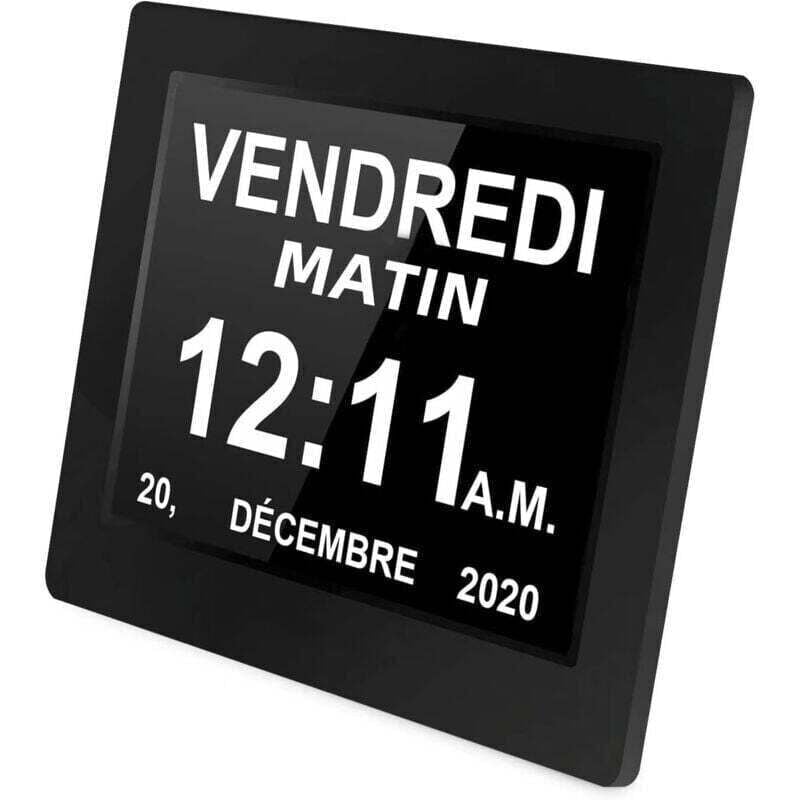 8 Pouces Horloge numérique Horloge de Jour Grand écran réveil Horloge Murale horloge Alzheimer pour parents (Noir)