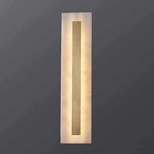 SIYANE Appliques murales en marbre linéaire longue en cuivre Applique murale moderne contemporaine Lampe murale à LED à gradation dorée Grand luminaire en verre d'albâtre blanc pour chambre à coucher