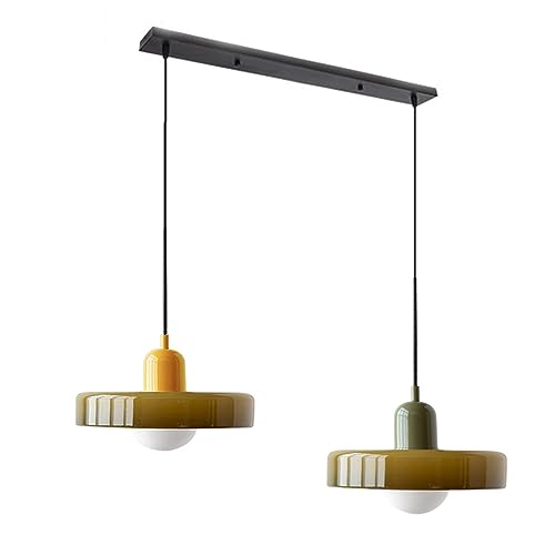 GGBBJJ Grand luminaire suspendu en verre vert à 2 lumières, lustre moderne du milieu du siècle, lampe suspendue de ferme vintage, lampe d'îlot de cuisine sur évier, chambre à coucher, salle à manger,