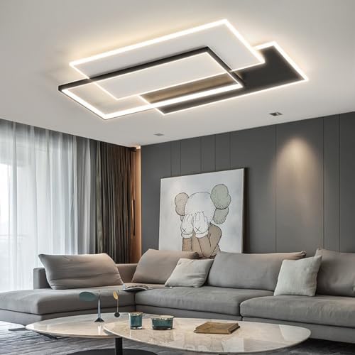 DJChen Plafonnier Led Salon Grand Format, Luminaire Plafonnier Led Moderne Avec Télécommande APP, 55W Dimmable, 3000K-6000K, 4400lm, Decoration Plafond Pour Salon, Salle À Manger, Chambre-Noir