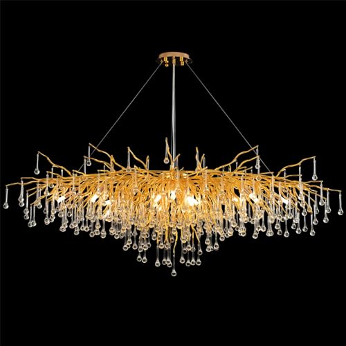 IDHBGJD Lustre Moderne en Cristal doré – Design Goutte de Pluie et Branche d'arbre – Grand luminaire Suspendu de Luxe pour Salle à Manger, Salon, Chambre à Coucher, Haut Plafond, entrée/Hall d'entrée