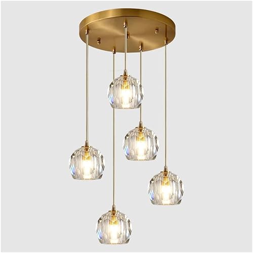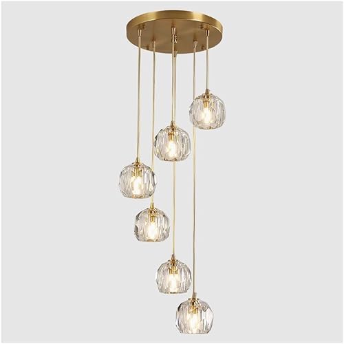 purpleq Moderne Escalier Suspendu Lustre,Plafonnier Lustre Verre Boule Suspension,Lampe Led,Grand Multi Ampoule Luminaire Suspendu Pour Salon,D'or,6 heads
