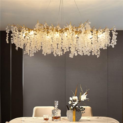 SADRYHFG Lustre Moderne en Forme de Branche d'arbre, Grand luminaire rectangulaire en Forme de Goutte de Pluie, Suspendu pour Hauts plafonds, Cuisine, îlot, Salle à Manger et Foyer, L120 cm, doré