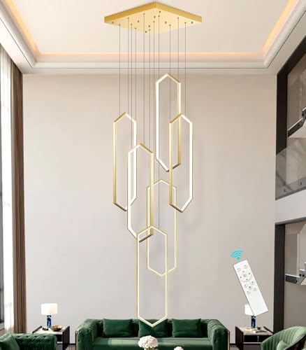 YCVAWEOD Long Lustre Moderne à LED – Suspension géométrique à Hauteur réglable pour escalier et Salle à Manger Lampe Suspendue en Aluminium à intensité Variable Grand luminaire Contemporain LWX