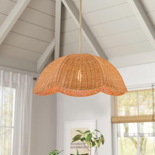 Yezgge Lustre en rotin bohème de 60 cm, suspendu floral tissé à la main avec tige de suspension réglable, grand luminaire à suspendre pour salle à manger, îlot de cuisine, salon