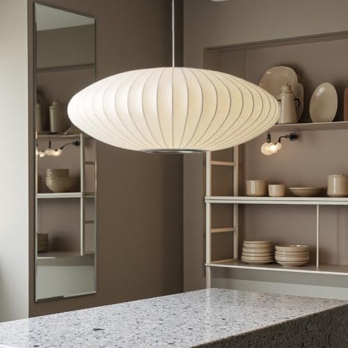 VTAMng Suspension Luminaire moderne en soie blanche grand luminaire de style nordique hauteur réglable luminaire décoratif Wabi Sabi for salon cuisine îlot central salle à manger lustre