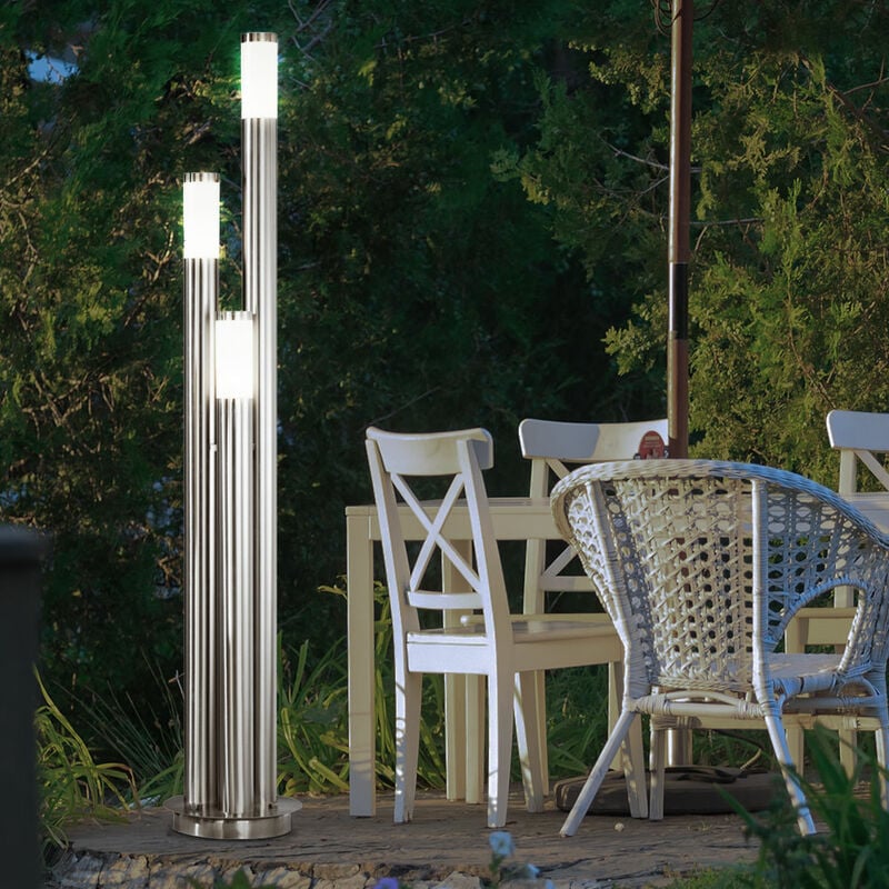 Lampadaire led d'extérieur en acier inoxydable, grand luminaire d'extérieur, lampe de jardin 170 cm, 3 colonnes argentées, 3x 11W 3x 1055lm blanc