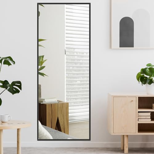 Koonmi Miroir de Sol, 52 x 161 cm, Pleine Longueur avec Cadre Minimaliste en Aluminium, Grand Miroir Mural Moderne à Poser ou à Suspendre pour Salon et Chambre à Coucher, Noir