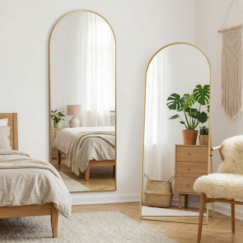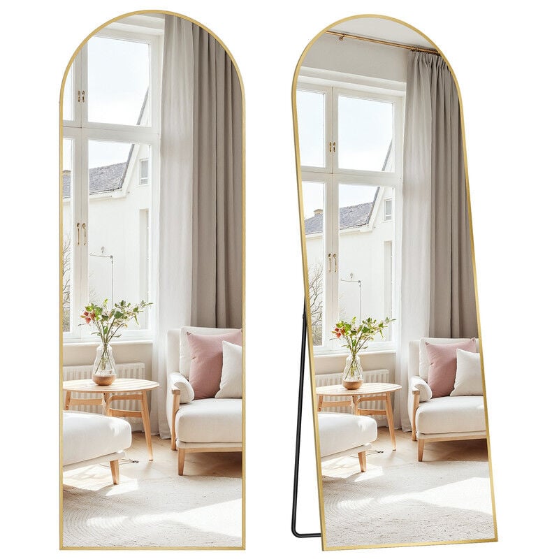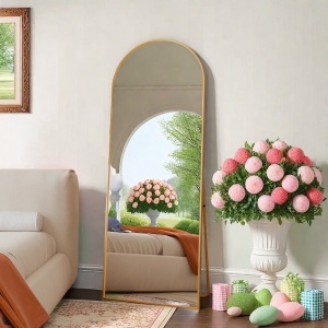 Miroir corps entier arc, 165 × 60 cm sur pied avec cadre doré, Grand miroir mural à poser, à appuyer ou à suspendre, miroir de sol pour chambre à coucher, salon