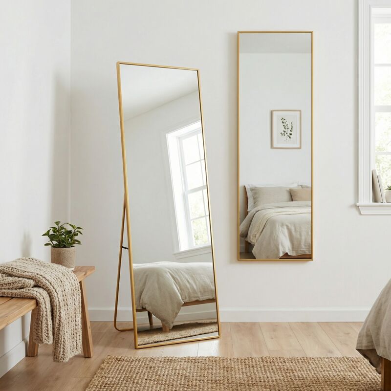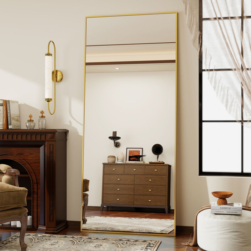 Koonmi Grand Miroir sur Pied 89 x 198 cm, Robuste, Cadre en Aluminium Minimaliste, Miroir Mural Moderne à Poser ou à Suspendre, Salon et Chambre à Coucher, doré