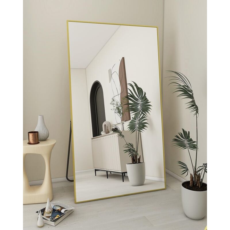 173x63 cm miroir rectangulaire sur pied, à poser au sol, grand miroir avec cadre en métal, miroir de sol pour chambre, dressing, salon - Doré