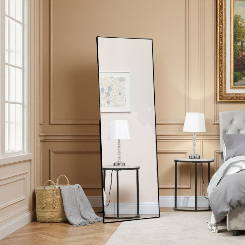Aica miroir intégral, 160 x 50 cm, miroir sur pied, grand miroir à poser au solsuspendu, cadre noir en alliage d’aluminium, verre trempé, pour chambre, salon, dressing