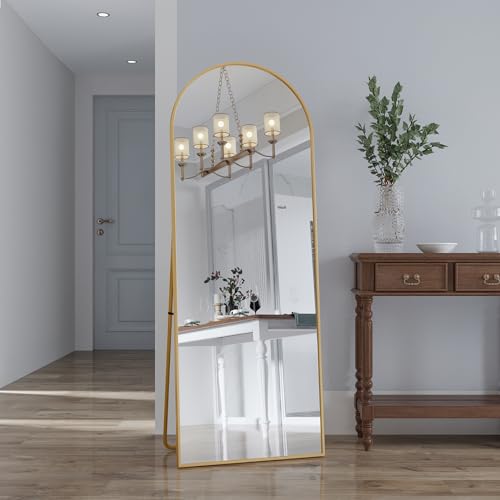 NEUWEABY Miroir Pleine Longueur Arqué de 162 x 53 cm avec Support Grand Miroir Mural Doré à Suspendre ou Appuyer Contre Un Mur pour Chambre à Coucher, Entrée, Salon
