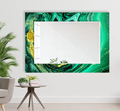 My Photostation.com Grand miroir mural en verre trempé 69,9 x 50,8 cm (horizontal) - Miroir mural biseauté unique - Miroir asymétrique - Miroir de salle de bain - Doré et vert