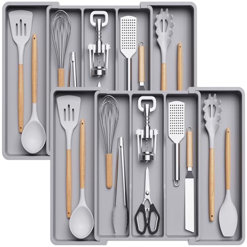 Lifewit Range Couverts pour Tiroir, Grand Plateau de Couverts Extensible pour la Cuisine, Support Réglable pour l'Argenterie et les Couverts, pour Outils et Gadgets, Paquet de 2, Gris