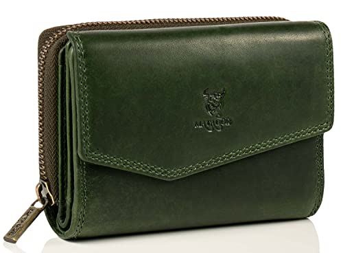 MATADOR Portefeuille Femme Cuir Véritable Grand Format | Porte Feuille Femme avec Grande Porte Monnaie Zippé et Boîte Cadeau | Porte Chequier Pochette Femme avec Protection RFID certifiée TÜV | Vert